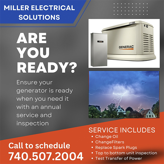 Contact Miller Electrical Solutions, for Generator Sales, Generator Installation, and Generator Maintenance, Proudly Serving Knox, Delaware, Licking, Coshocton, Richland, and Ashland Counties, in Ohio.